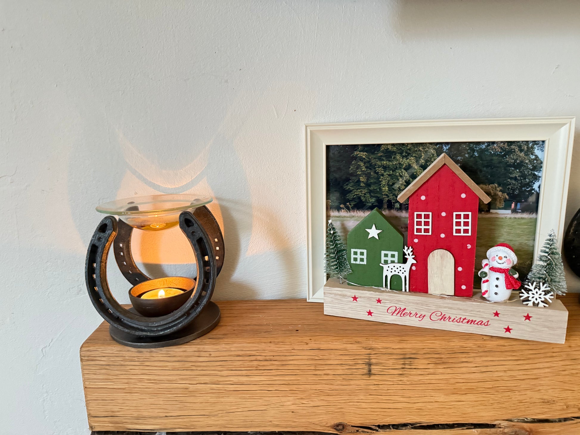 Rustic Wax melt...essential oils burner, made from new horseshoes all welded onto a solid steel base. Stunning addition to any home. Melt dish sits on top and is easily removed for cleaning. All painted in antique bronze colour or laquered bare metal